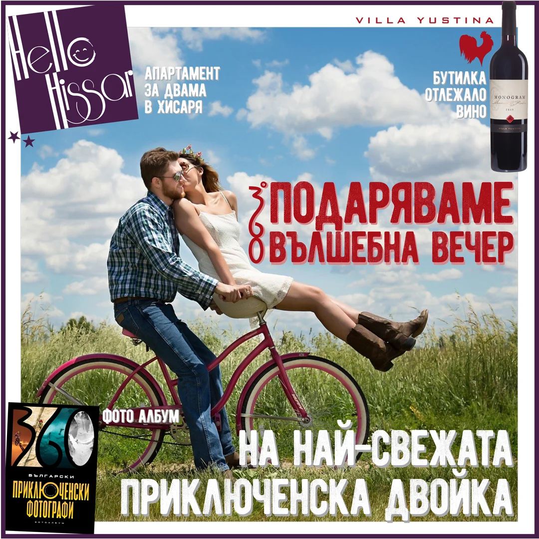 Най-свежата приключенска двойка получава бутилка от едно от любимите ни вина Монограм Мавруд и Рубин 2015, нощувка в едно от предпочитаните ни места за качествено прекарване на романтична вечер – Апарт хотел Хелоу Хисар в град Хисаря и Фотоалбумът на списание 360°- „Български приключенски фотографи“ .