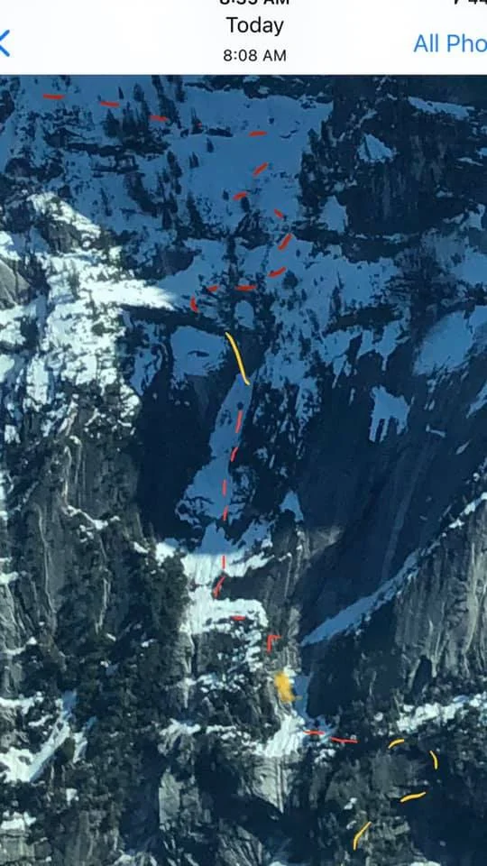 Миналия месец Джейсън Торлано осъществява мечтата си да се спусне със ски, заедно със своя приятел Зак – катерач (известен със своите фрий солота в Йосемити), който отива да снима, но в последния момент решава също да се включи. Двамата прекарват студената нощ на 20-и срещу 21 февруари под върха, до едно дърво без спални чували, за да спестят от теглото, и започват опасното предизвикателство по изгрев слънце. Изминават линията, дълга 1500 метра, в продължение на над 5 часа, включително през Смъртоносните плочи. По част от маршрута се налага да пускат рапели, тъй като скалите не са покрити със сняг. Използват стара екипировка, тъй като и двамата нямат спонсори.