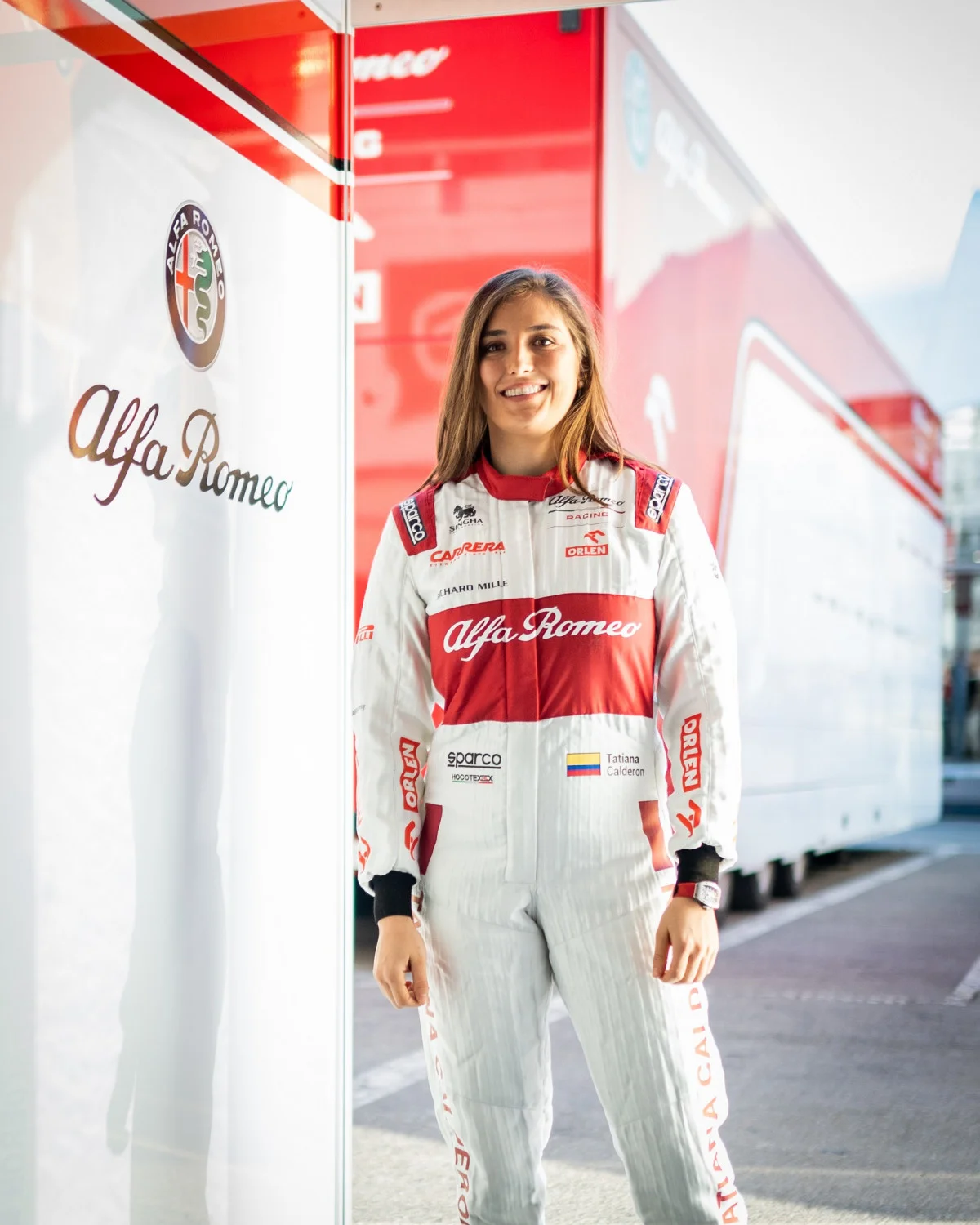 Татяна Калдерон. Родена в Богота, Колумбия през 1993 г., Калдерон прави първите си стъпки в автомобилния спорт през 2005 г., печелейки национално първенство в серията Easy Kart Pre-Junior. Само три години по късно тя вече е първата жена, която спечели клас JICA на шампионата Stars of Karting East Division в САЩ. През 2017 г. Калдерон стана двигател за разработка на екипа на Sauber Formula One. Една година по-късно Sauber я повиши от пилот за разработка на F1 до тестови пилот за Alfa Romeo Racing.