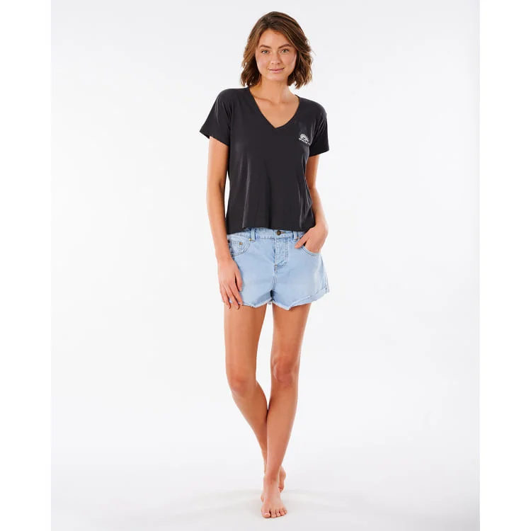 RIP CURL SALTWATER V-NECK TEE WASHED BLACK SS21