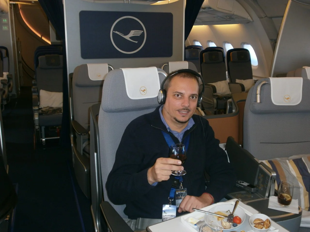 На борда на самолет на „Луфтханза“. източник: Личен архив на Николай Петров