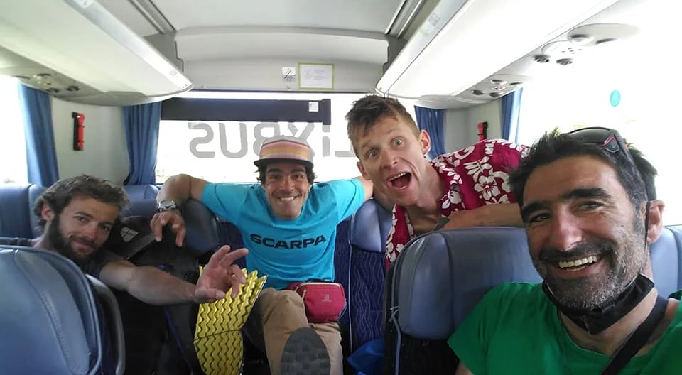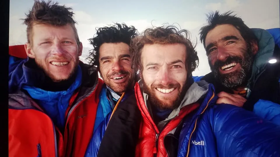 Въпреки това, на снимката четиримата са щастливи – успели са да преминат изключително красива, премиерна линия (върхът е бил изкачен преди по друг маршрут). Наричат я “Harvest Moon”, 1600 м.