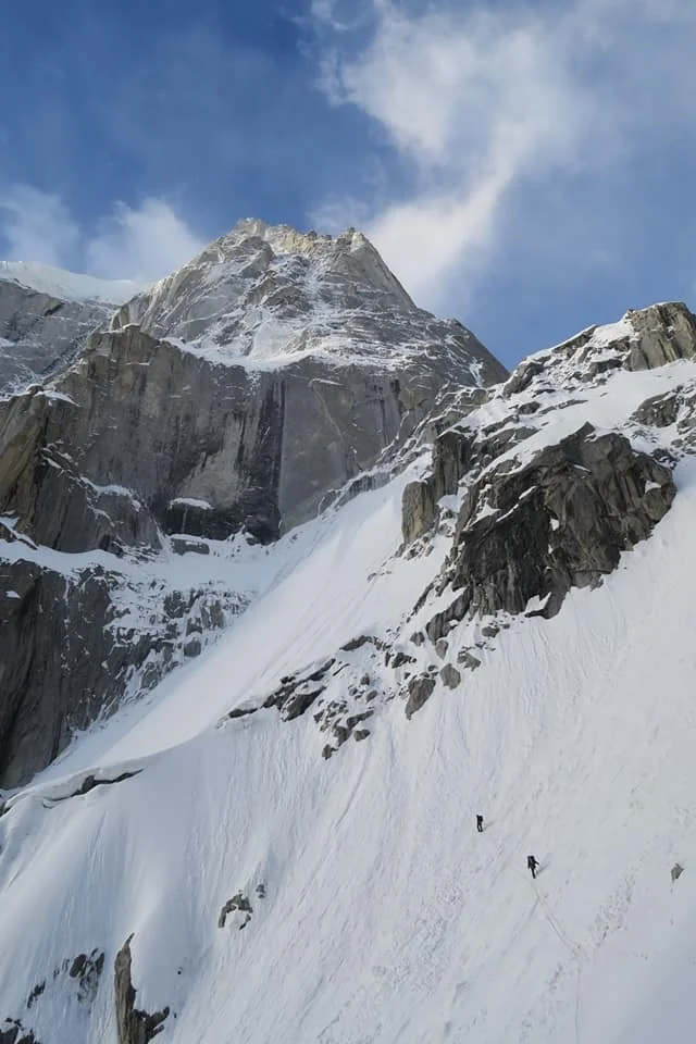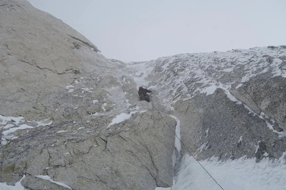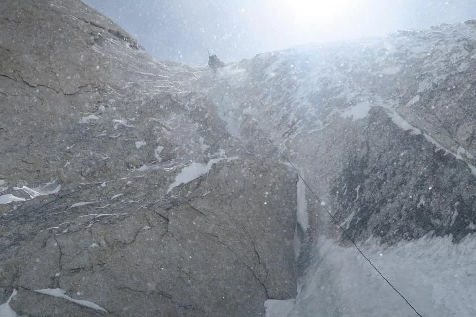 Жером: Защото новолунието донесе промяна във времето и ни даде възможност да се изкатерим. Отне ни 6 дни, тъй като времето не беше подходящо, имахме един ден на стената, в който просто чакахме снеговалежите да спрат.