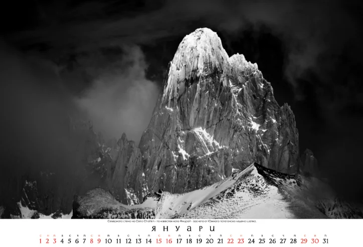 12 впечатляващи кадъра + 12 завладяващи разказа за планината в един календар!