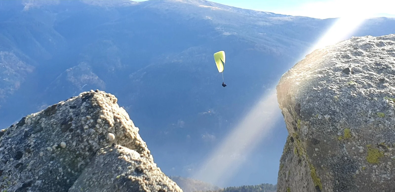 Миналият уикенд, заедно с Данила Ангелова, която спечели голямата награда от последната ни фото игра „Покажи ни своята книга „Истории за началото на планинарството в България“ полетяхме с парапланери от връх Калин в Рила.