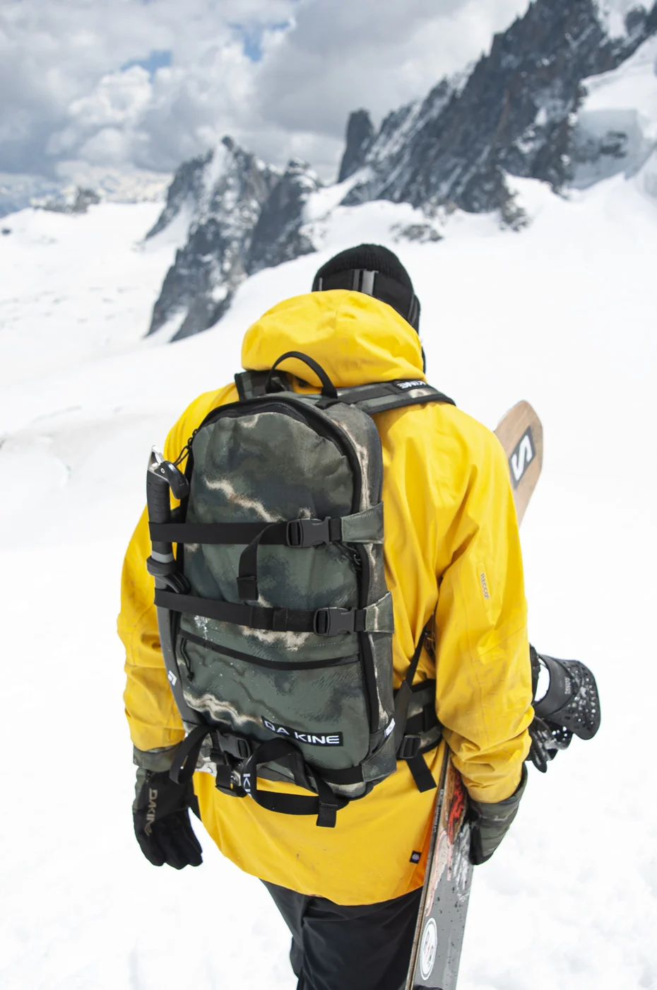 Този модел на DAKINE разполага с вертикална система за прикачане на сноуборд