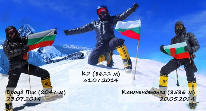 Осъществи първия за българите Хет-трик, като през 2014 г. в границите на 100 дни осъществи изкачвания на три осемхилядника – Кангчендзьонга /22 май/, Броуд пик /23 юли/ и К2 /31 юли/. По най-категоричен начин, с българския флаг, документира присъствието си на най-високата точка на 10-те си върха. Или казано по-ясно бе там откъдето всяка следваща крачка бе само нодолу.