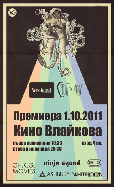 На 01.10 в Кино Влайкова ще се проведат две премиери на сноуборд филма на Videograss – Shoot the Moon и видеото на местните момчета Ninja Squad – Weekend.