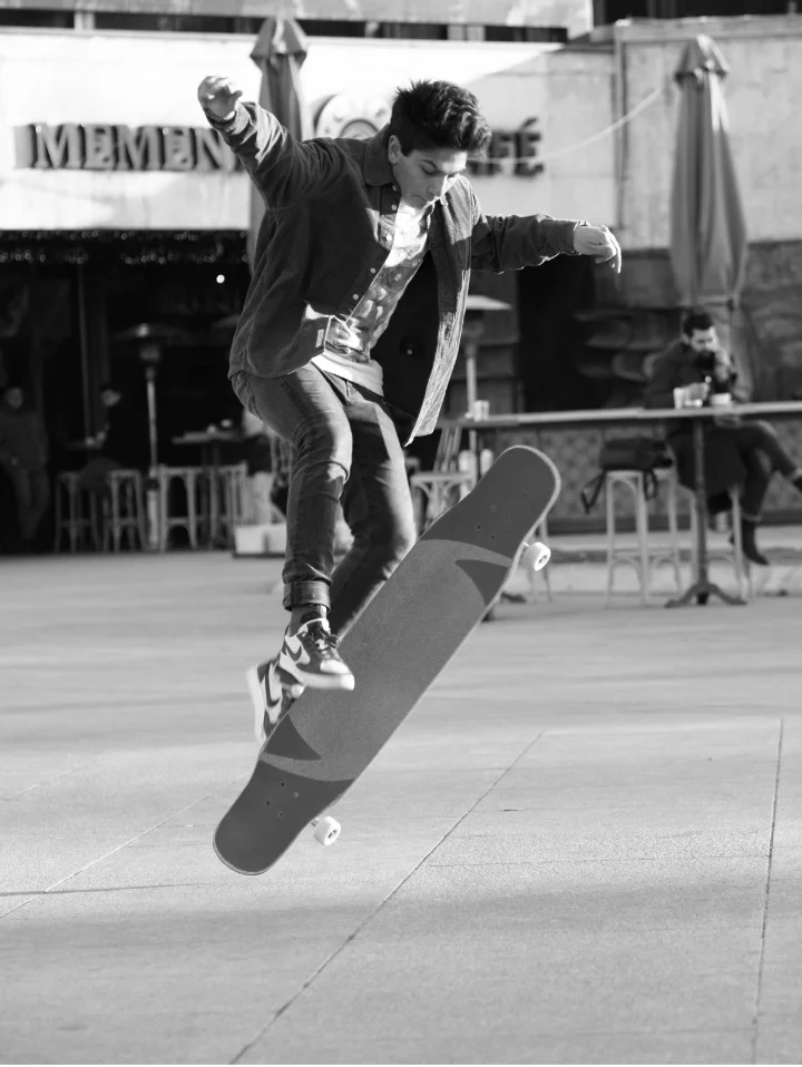 Веднъж видях едно момиче от нашето училище да упражнява трикове с лонгборда в парка, правеше няколко стъпки, хващаше дъската и скачаше върху нея. Опитах се да направя същото. В лонгборда надграждаш, учейки се от другите.