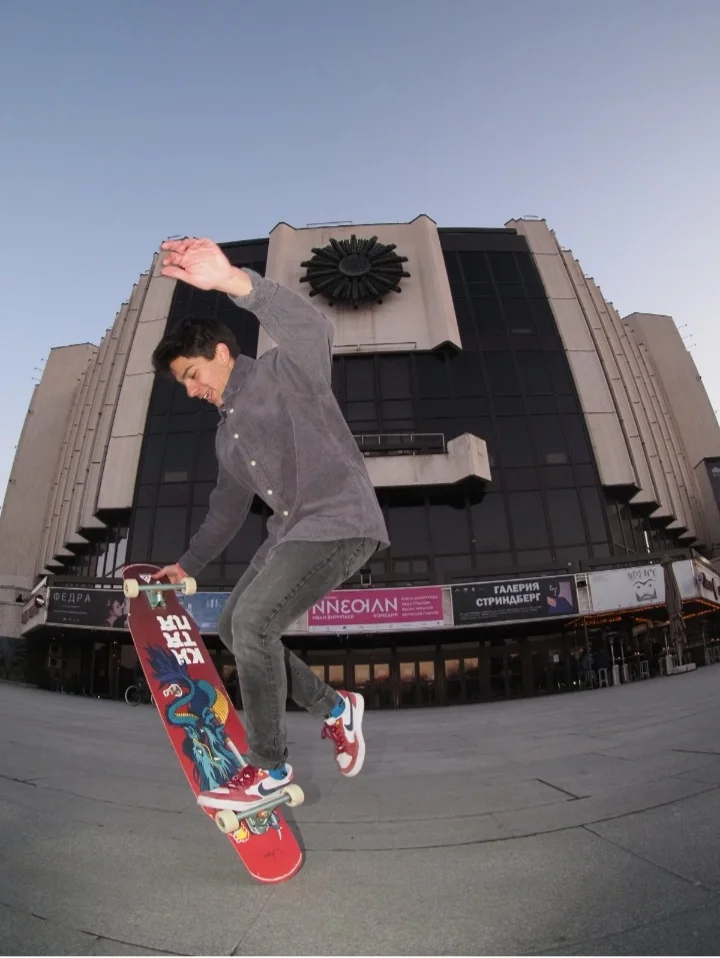 Уча в Художествената гимназия в София. Родителите ми са художници и аз също се занимавам с това. Почти цялото ми време е заето с каране и рисуване. Направил съм си дизайн за лонгборд, но все още ми е само за училище, не мисля да го реализирам засега.