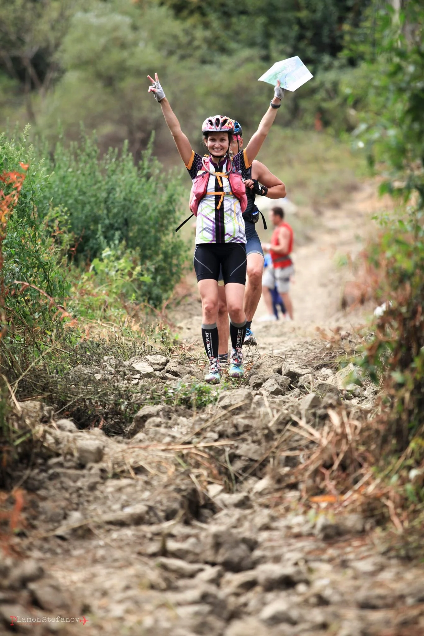 – Елит – 35км (колоездене); 20км (пеш); 4км (гребане с каяк); скално катерене (около 15м, до 6-та категория по UIAA); D+ 1900м;