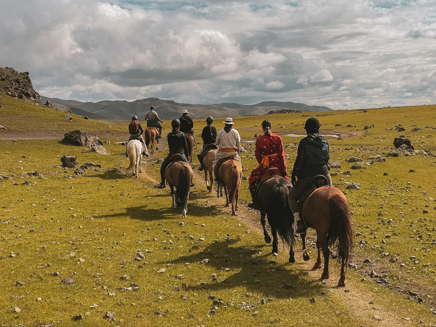 Габи: Обикновено се използват коне от арабски и английски породи, тъй като те са най-бързи и издръжливи. Използват се още местни породи и куортър коне, които са много популярни в Америка. Повечето от конете участват в състезания по прескачане, поло и други, добре обучени са и имат страхотна сила и характер. За такъв тип преходи е хубаво човек да има здрави коне, които имат енергията и импулса да изминат толкова много километри за малко време. В Монголия се яздят полудиви коне, но там методът на отглеждане на тези животни е съвсем различен. Там природата полага грижи за тях, не хората. Но това е и чарът на изживяването в степите.