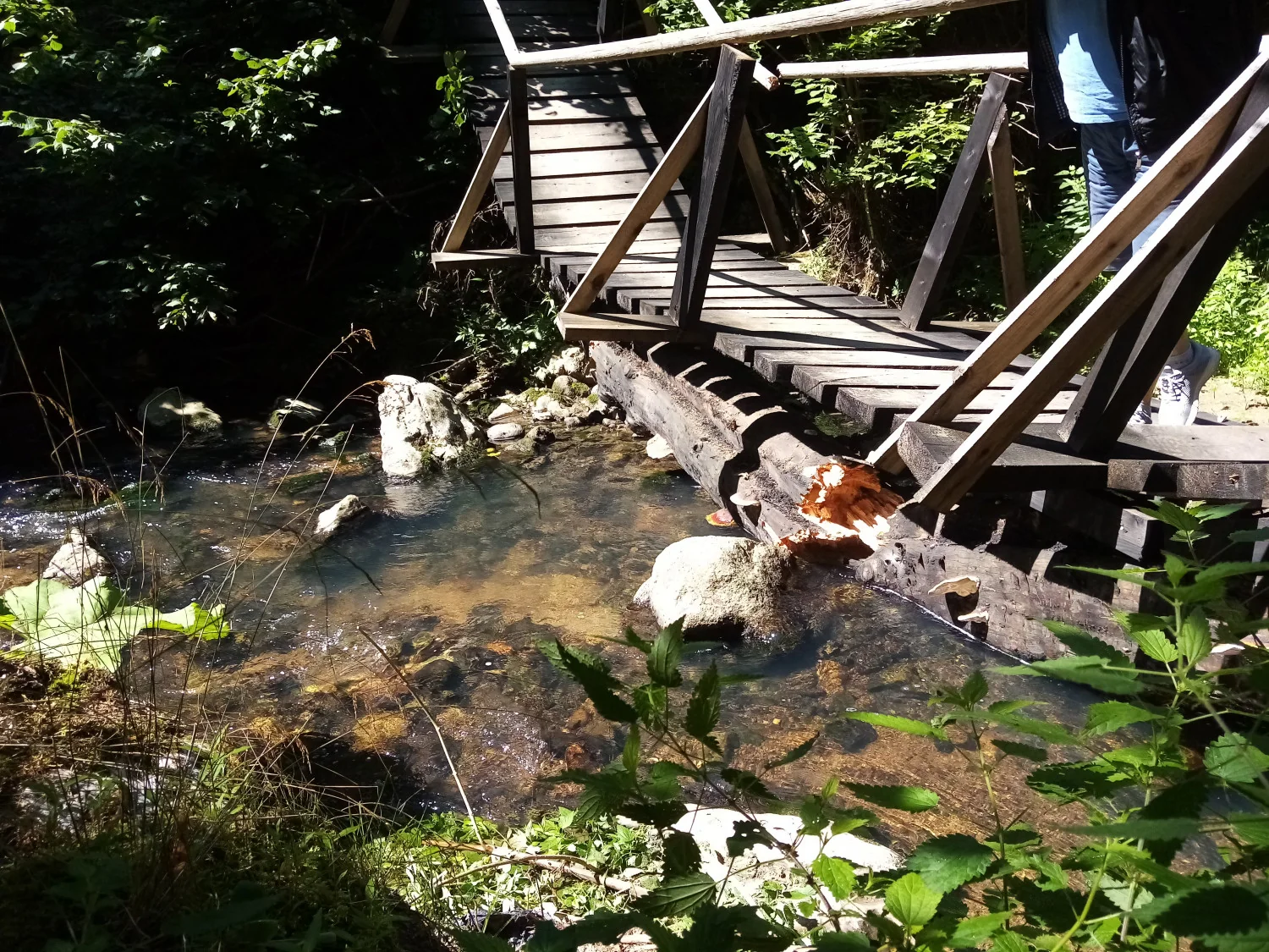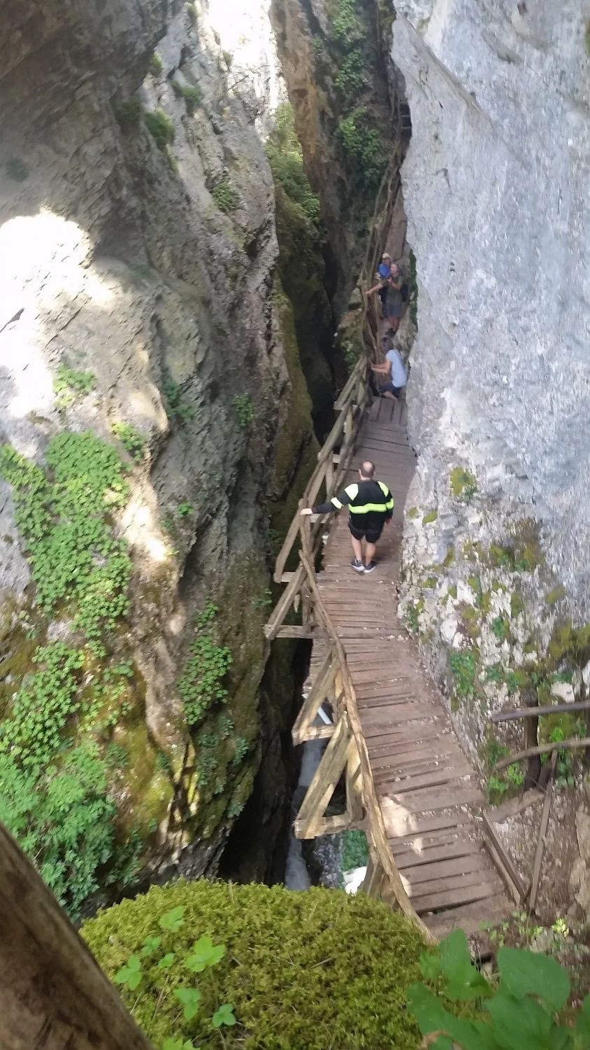 Мелек учтиво ще ни отведе до картата, за да ни въведе в това, което ни предстои. Възможностите ни са две. Поемаме пеша по лек и много приятен коларски път. След 35-40 минути спираме пред „Дървото на късмета”, а след още двадесетина минути тясна наклонена, но добре обезопасена пътечка ни отвежда до самия мост. Стръмна дървена стълба ни спуска ниско долу към сребристата ивица на Дяволската река. После по 30-40 метров въздушен дървен мост повишаваме адриналина. Следва стръмна възходяща стълба, която отново ще ни изведе на повърхността, но вече от другата страна на Дяволския /Хайдушкия / мост.