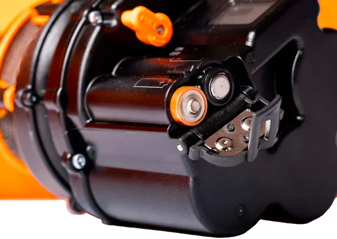 Е2 системата се зарежда чрез micro-USB кабел за 20 минути. Освен това могат да бъдат използвани две АА батерии, с които зареждането на спуперкондензаторите става за 40 минути. Това означава, че носенето на допълнителен заряд вече е много лесно, както и осигурява независимост от електропреносната мрежа. Ако не бъде активирана двете АА батерии осигуряват на системата автономност в продължение на 3 месеца, така че лавинната раница да е винаги в готовност.