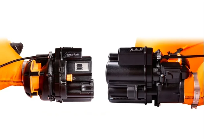 Alpride E2 е проста за употреба, само с един бутон за включване и изключване, както и клапан за ръчно спадане на въздуха от въздушната възглавница. Когато бъде включена системата минава през авто тест на повече от 15 параметъра и компонента. Статусът и нивото на заряд могат да се следят чрез LED индикатори, разположени от външната страна на раницата.