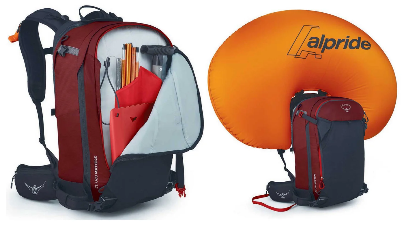 Лавинната раница на Osprey Soelden Pro E2 се предлага в два варианта – Soelden Pro E2 (мъжки, 32 литра) и Sopris Pro E2 (дамски, 30 литра). Макар на външен вид раницата да изглежда като всяка една друга лавинна раница, то в нея е скрита Е2 системата, която използва суперкондезатори и същевременно е най-леката на пазара. Използването на суперкондензатори прави възможно Alpride E2 да работи оптимално в много широк температурен диапазон – от -30ºC до +40ºC. Друго предимство на тази технология е, че суперконденззаторите не подлежат на ограничения при самолетни пътувания, транспорт или съхранение.