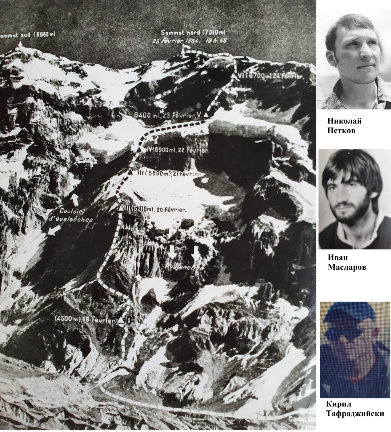От 6 до 8 януари 1988 г. Николай Петков, Иван Масларов и Кирил Тафраджийски осъществяват и първото българско изкачване на този връх и по „Френския маршрут” на южната стена. А както е известно в тези географски ширини не северните, както е у нас, а южните стени представляват по-голям интерес, тъй като те са лишени по-дълго време от слънчевите лъчи и склоновете им са много по-стръмни.