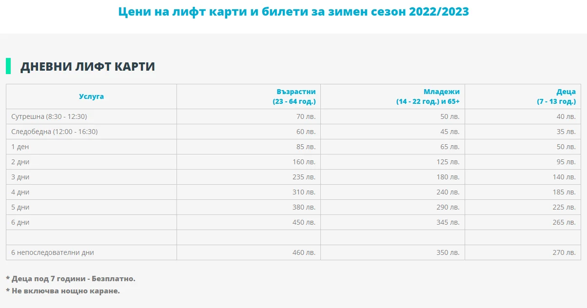 Vitosha Ski, цени за сезон 2022/2023 (2)