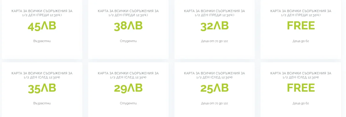 На 14.01.2023 г. в курорта бяха обявени намалени цени (които са по-ниски от посочените по-долу). Актуалните тарифи може да следите на техния уебсайт.