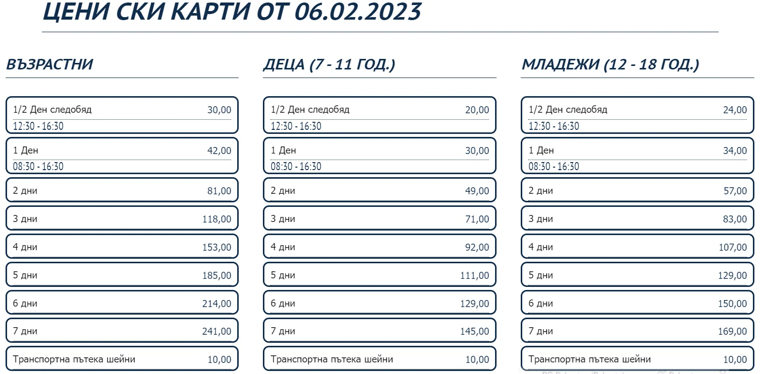Боровец, цени за сезон 2022/2023 (3)