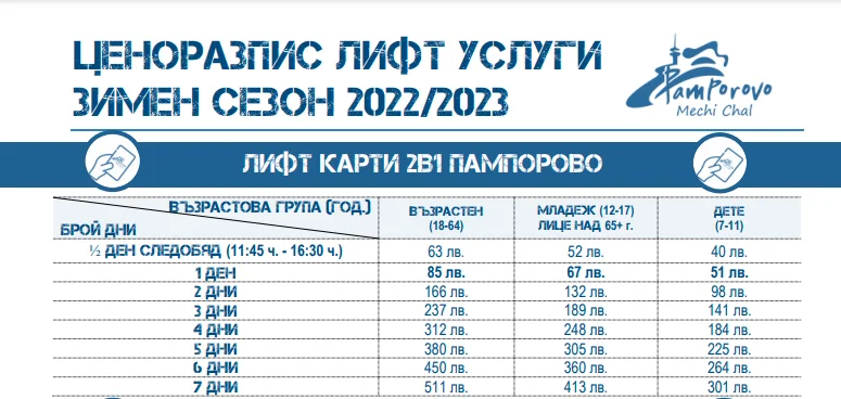 Пампорово, цени за сезон 2022/2023 (1)