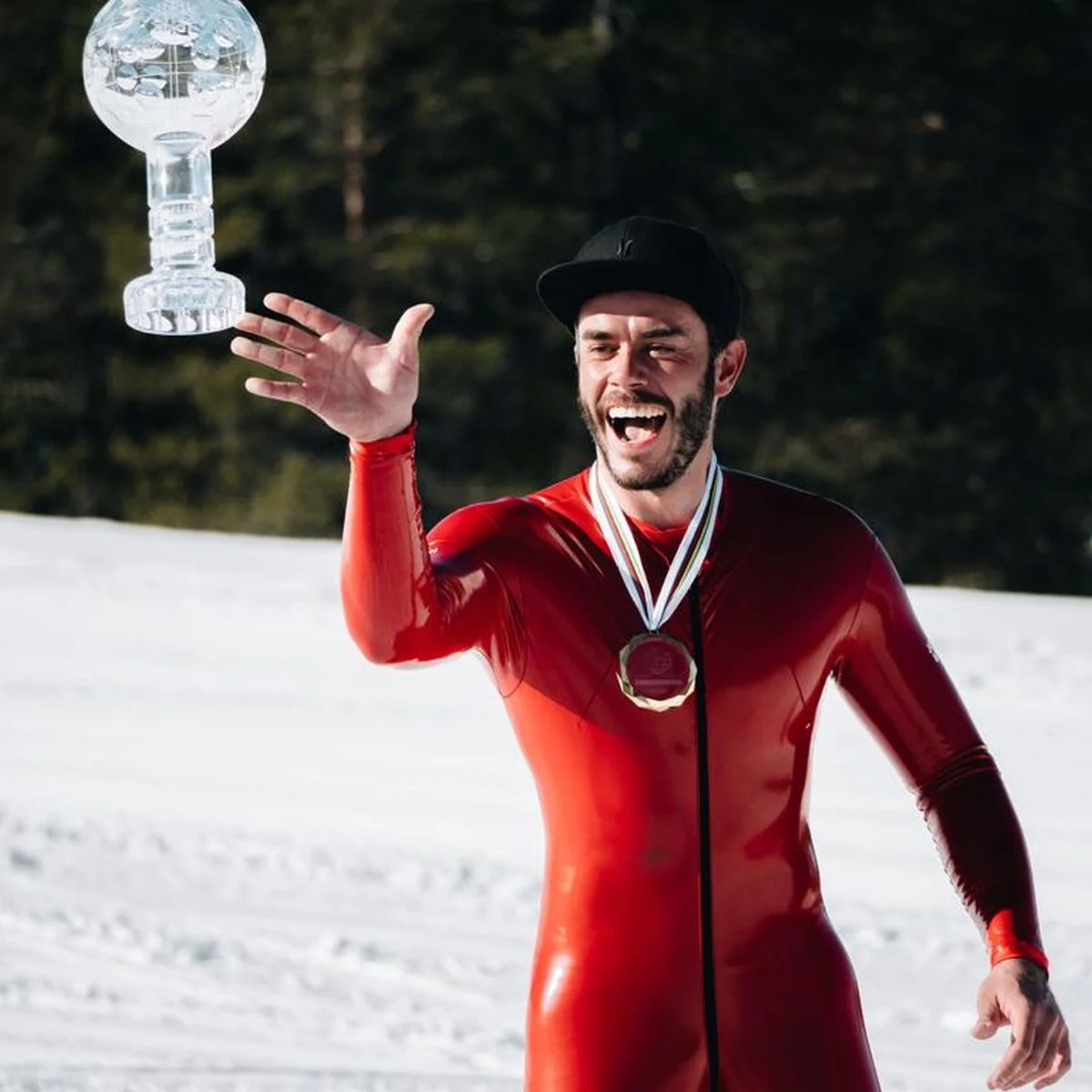 Той постави новия световен рекорд на Световното първенство по скоростни ски на наклон от почти 98 процента.