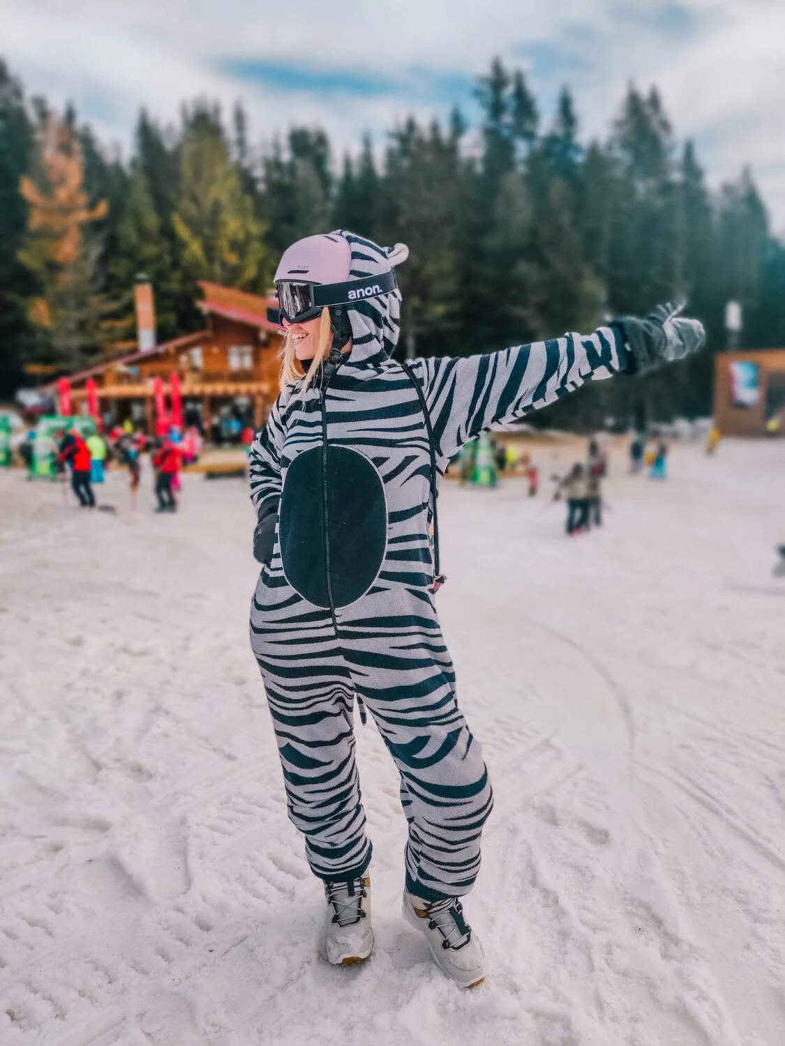 Любимият ми ден с момичетата е последната ни среща за миналия сезон, когато трябваше да облечем цели костюми на различни животни (т.нар. оnsies) и да караме с тях. Денят беше прекрасен, слънчев, топъл и можехме спокойно да караме в костюмите, без допълнителни слоеве екипировка. Имаме страхотно видео от този ден, бяхме истинска атракция по пистите. Представете си зоопарк-сноубордисти, които скачат напред-назад. Е, може и да не си го представяте, ако изгледате клипчето.