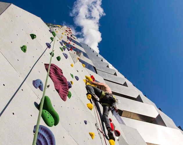 Скандинавският климат е особено суров, с екстремни температури и силни ветрове, да не говорим за корозията, причинена от соления въздух от Балтийско море. За да се гарантира здравината и дълготрайността на произведенията, използваемата повърхност от 1200 m2 е съставена от конструкция от неръждаема стомана, панели от плексиглас и фибростъкло, най-устойчивият на атмосферни влияния материал за стени за катерене, предлаган на пазара. Практически прозрачна отвън, стената, предоставена от Walltopia, хармонира с линиите на фасадата на сградата, за да създаде маршрут за катерене, който се слива перфектно с нея. Освен това тя запазва естествения поток от светлина.