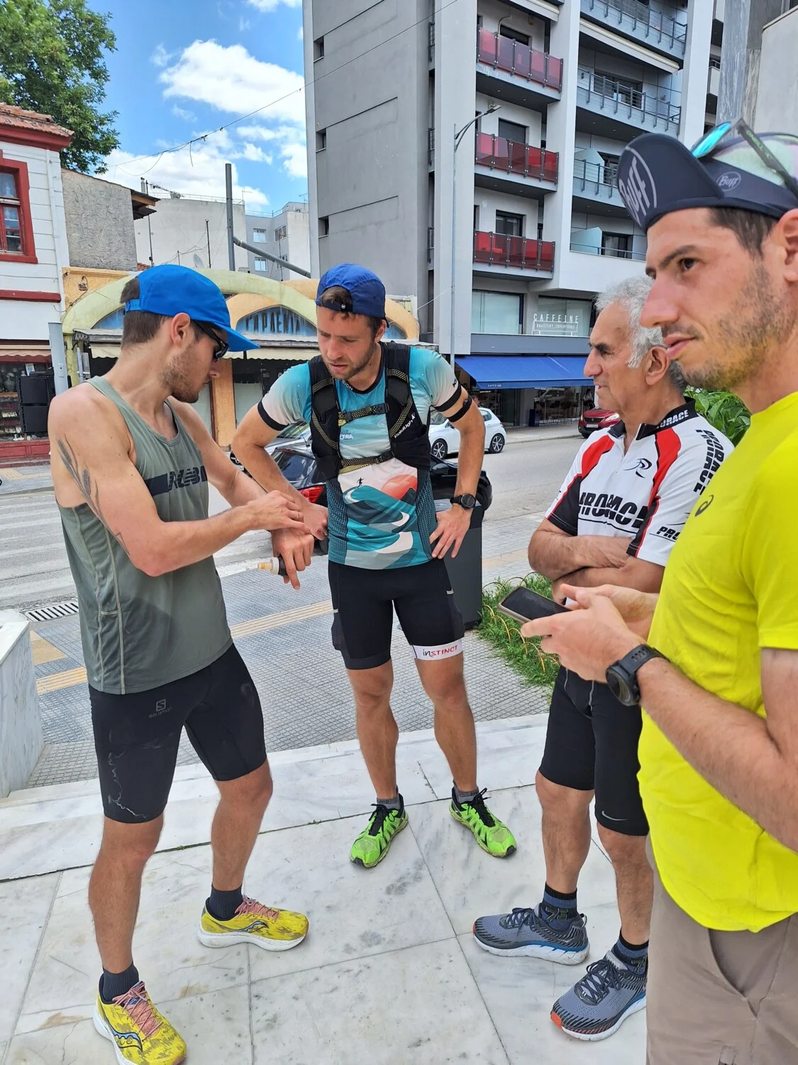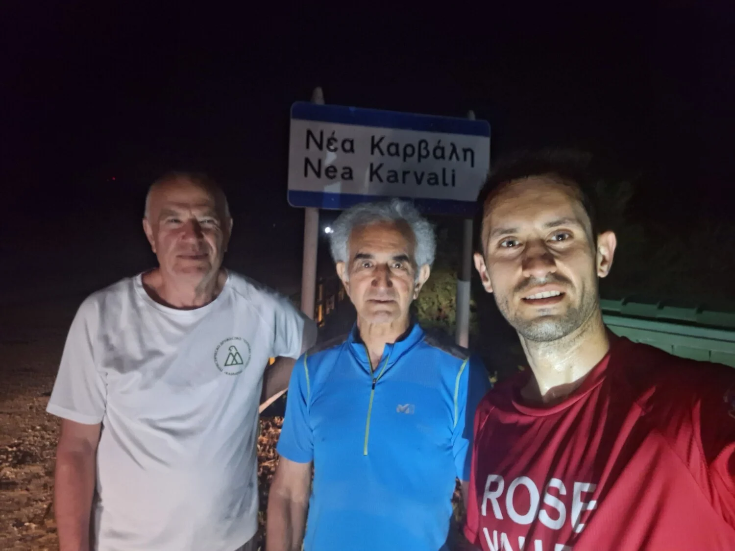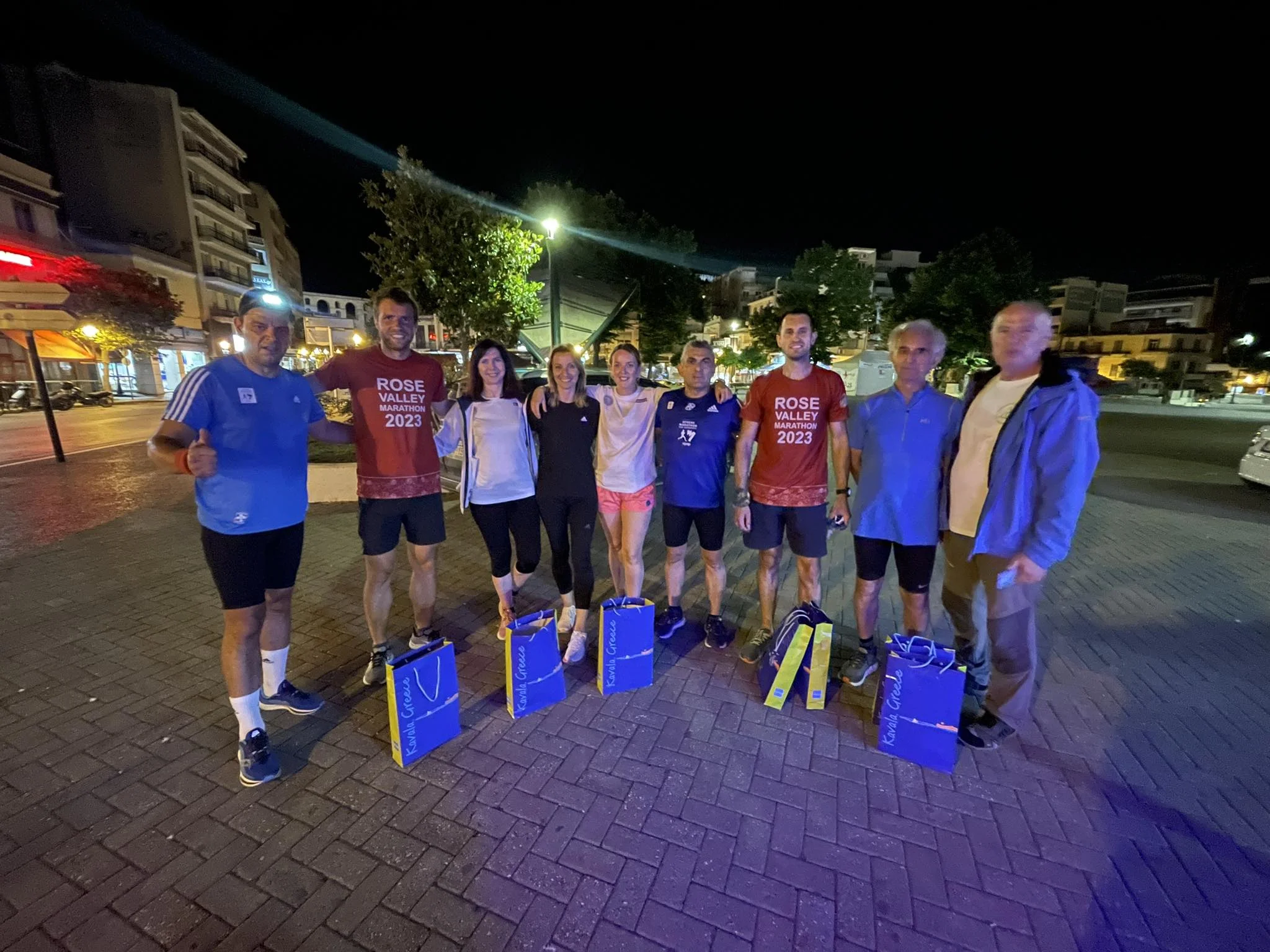 Контактът е осъществен официално чрез омбудсмана на гр. Казанлък – г-жа Гинка Щерева. „Както повечето сигурно знаят, гърците са с много силни традиции в бягането и приеха събитието ни присърце – казва Младен, – тук искаме да изкажем благодарността си към Крис Андреадис от гр. Кавала, който организира посрещането ни 15 км преди Кавала с няколко човека от бегачески клуб от Елифтеруполи и бягах половината си смяна с тях. Беше много емоционално зареждащо – бяха ни направили пункт, пазиха ме от глутница бездомни кучета в един от крайните квартали след Елифтеруполи. Доста си говорихме по време на бягането и километрите до края не се усетиха, а точно тази вечер трябваше да наваксаме изоставането от първия ден и бягането продължи малко след полунощ до Неа Карвали.“