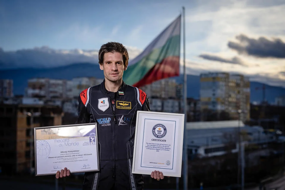 Българският пилот от военновъздушните сили Николай Калайджиев реализира уникално постижение. То бележи рекорд на Гинес за най-много последователни 360-градусови виражи без прекъсване с ултралек самолет. Той направи над два пъти повече завъртания, отколкото беше предишното най-добро постижение.