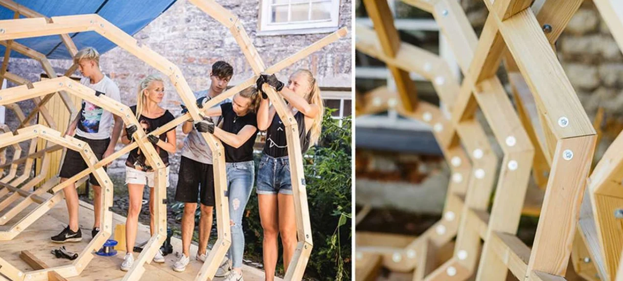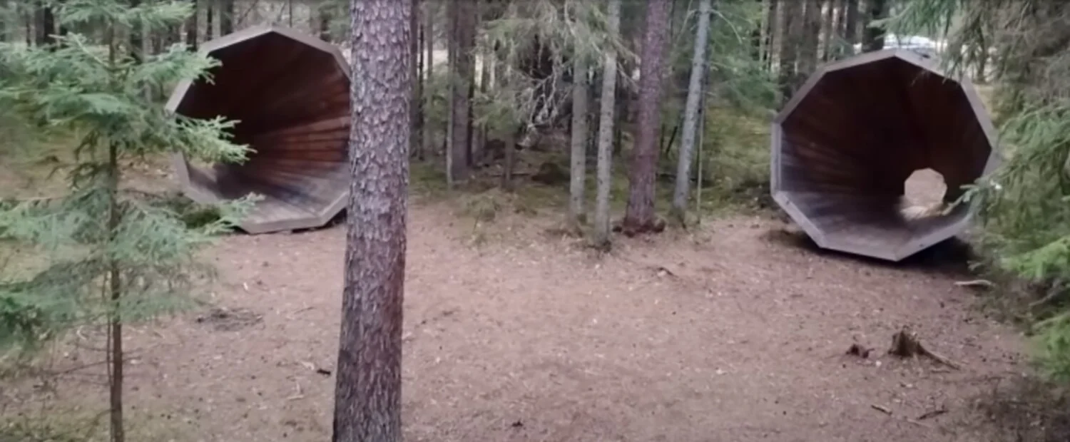 Тези дървени тръби са монтирани на поляна, дълбоко в естонската гора. Тъй като регионът е известен с естествената си красота, студентите решават да създадат големи усилватели, за да подобрят звуците от люлеещите се клони на дърветата и пеенето на птиците.