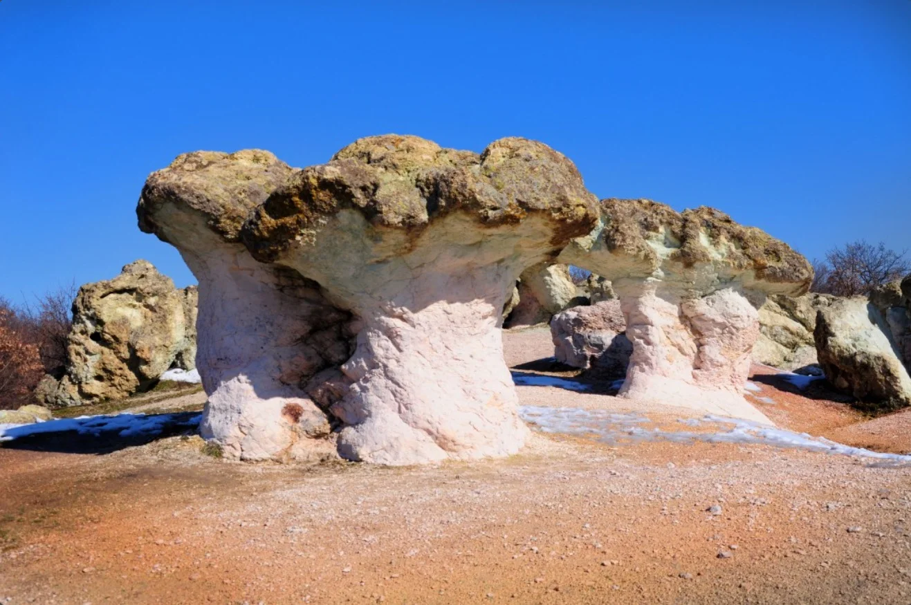 Излезли сякаш от приказка, тези скални образувания, наподобяващи огромни гъби, се намират близко до село Бели пласт в Родопите. Наричат ги още и Скалните гъби, а сред местните са известни и като Мантар кая.
