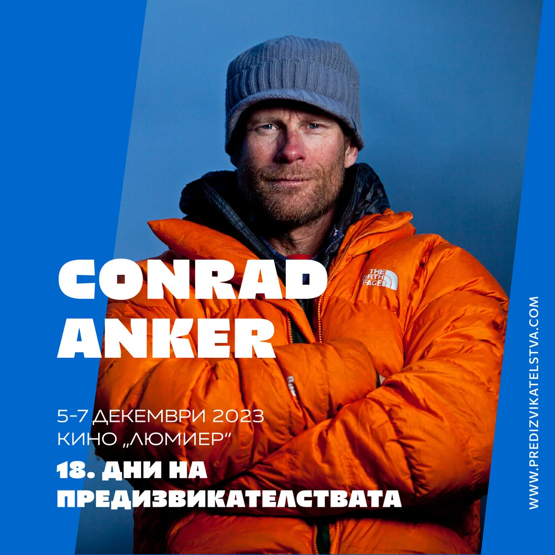 Големият американски алпинист Конрад Анкер пристига за 18-ото издание на Дните (5-7 декември 2023 г.) Осем филмови премиери и четирима гости от чужбина ни очакват във второто за годината издание на Фестивала.