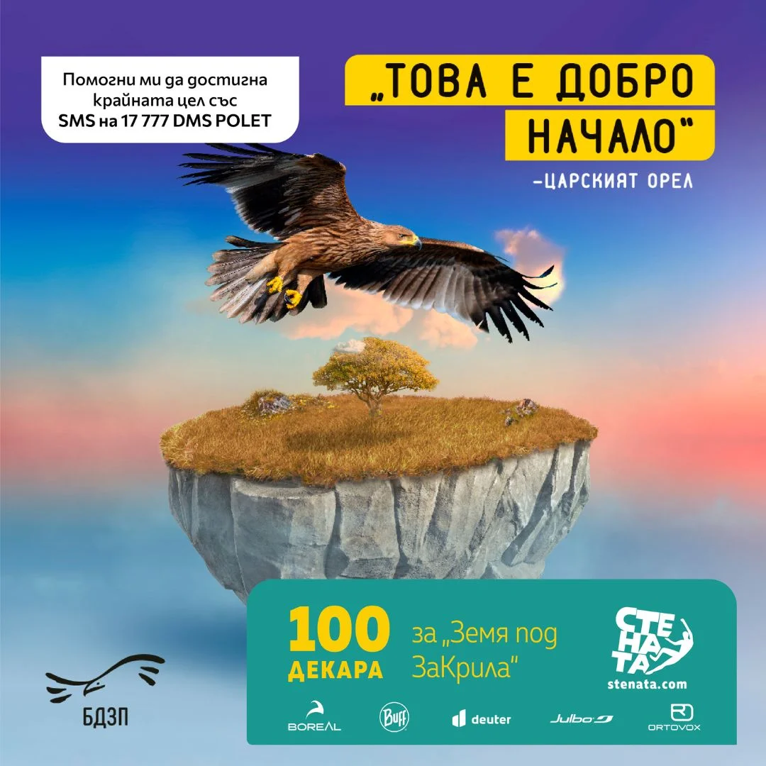 В последния ден от ДНИТЕ, 7 декември, ще се запознаем с кампанията на БДЗП (Българското дружество за защита на птиците), подкрепяна от магазини „СТЕНАТА“, за закупуване на територии в Сакар за местообитания на царския орел, ловния сокол и европейския лалугер.