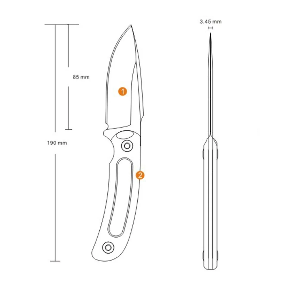 Фиксиран нож RUIKE Hornet F815Финишът на дръжката е с насечка против приплъзване, като може да избирате между два варианта от черен и оранжев цвят.