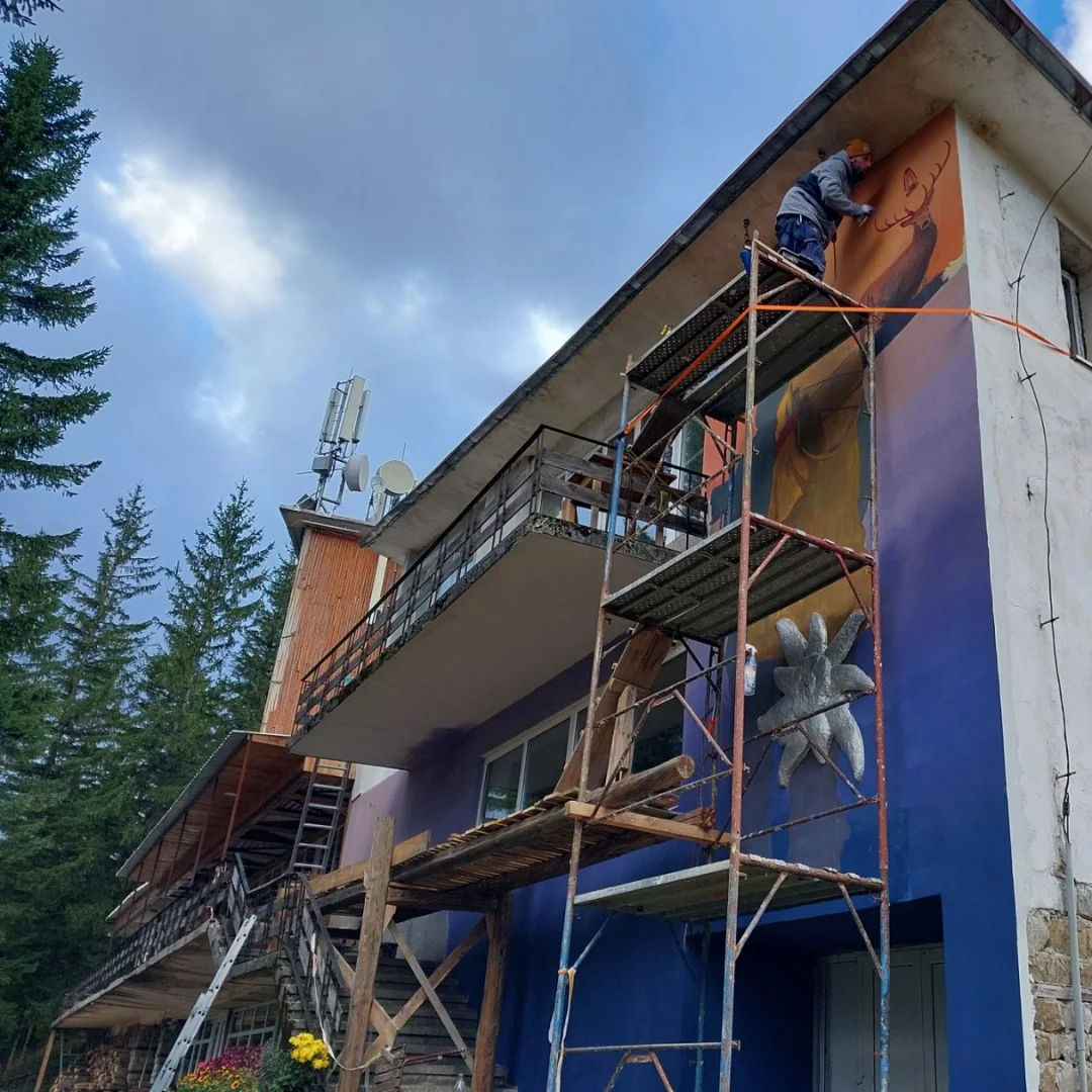 Намираме Иво на скелето на хижа „Плевен“, където рисува. Искаме де разберем как ще бъде преобразена тя, откъде идва идеята и какви са предизвикателствата в нейното реализиране.
