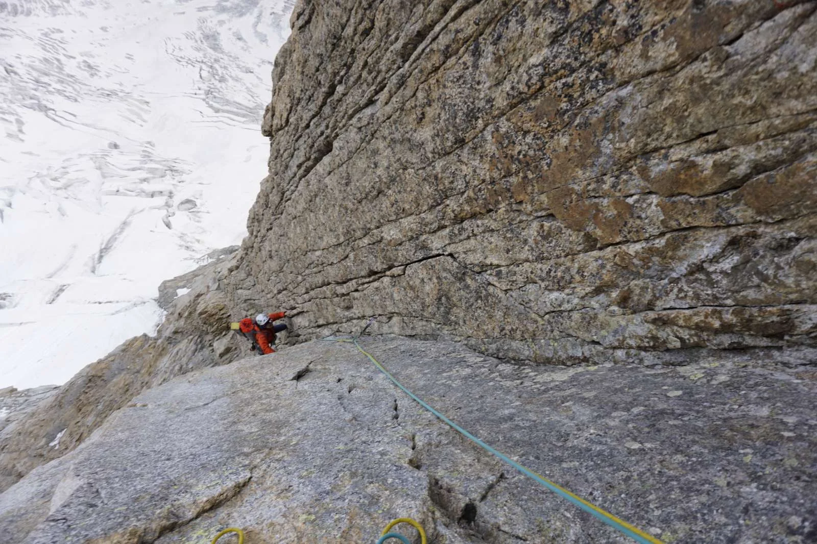 Естествено отново стартирахме в два през нощта, както доста често се случва в изкачването на алпийски върхове и стени. Хубавото беше, че ужким трябва да има болтове, което означаваше, че може да слезем по всяко време, а всъщност за 750 м има около 110 болта, което не го прави много осигурено, психическата ангажираност и страх отново е доста голяма, все едно да няма болтове, защото те са през доста голямо разстояние по плочите, което всъщност е характерно за ранните маршрути на Мишел Пила около 90-те години, когато този човек е бил доста силен и добър на плочи. Казвам това, защото има разстояние от над 7-8 м по плочи между болтовете, без никакво осигуровка.
