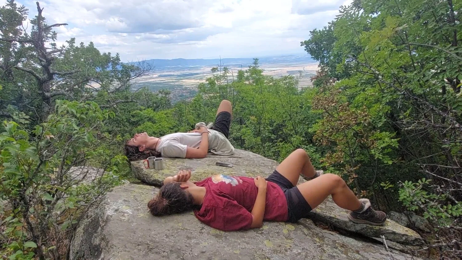 Пристигнахме в Карлово от различни страни, събрахме се, оптимизирахме раниците си и – нагоре по пътеката към хижа „Равнец“. След първите 200 метра разбрахме, че до хижата, ама никак, не е равно. След дългото лежане на пясъка до морето, това тук си беше задъхващо предизвикателство за всички. Утеха бяха местата за почивка и красивите гледки към Карловското поле. Крачка след крачка все по-нагоре и пред нас се откриват все по омайващи пейзажи. Младежите мрънкат приемливо и са решени да покажат, че макар и без опит въобще не са кашкавал туристи. Тук се роди и една идея, какво е нужно човек да носи в багажа си, без да се притеснява, че ще се натовари допълнително – ветрило! Помага и в жегата, и срещу досадните мушици.