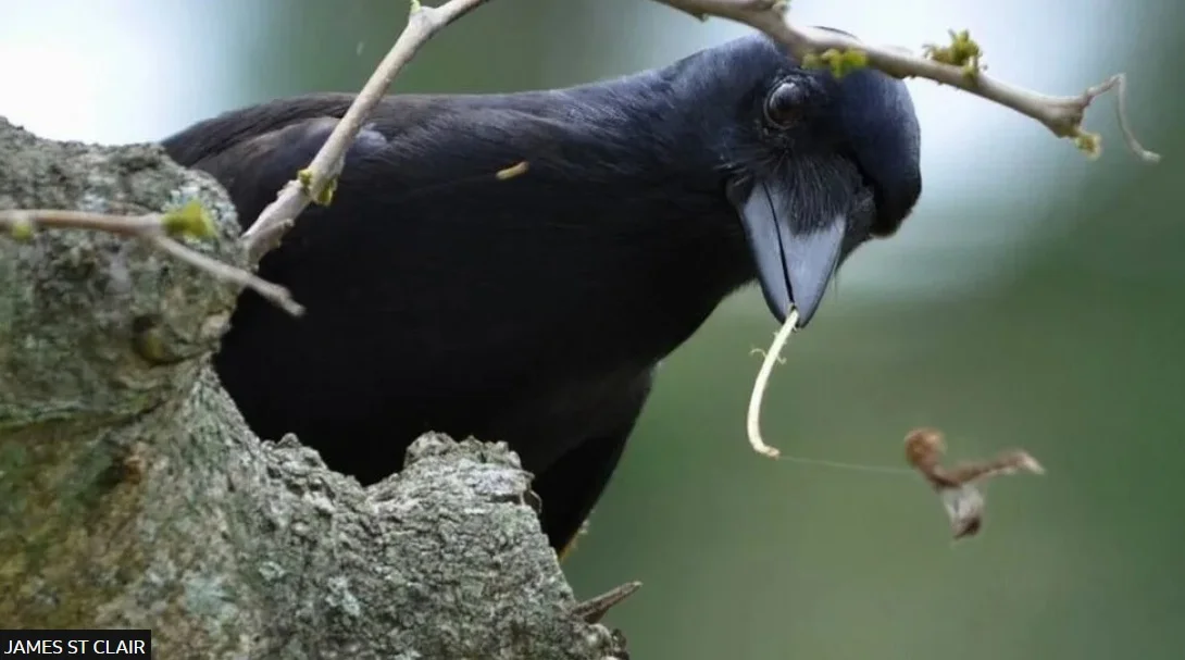 Разпространено бе и видео доказателство, показващо как гарвани обелват кора от клонка и оформят кука, с която измъкват труднодостъпна храна от пукнатини.