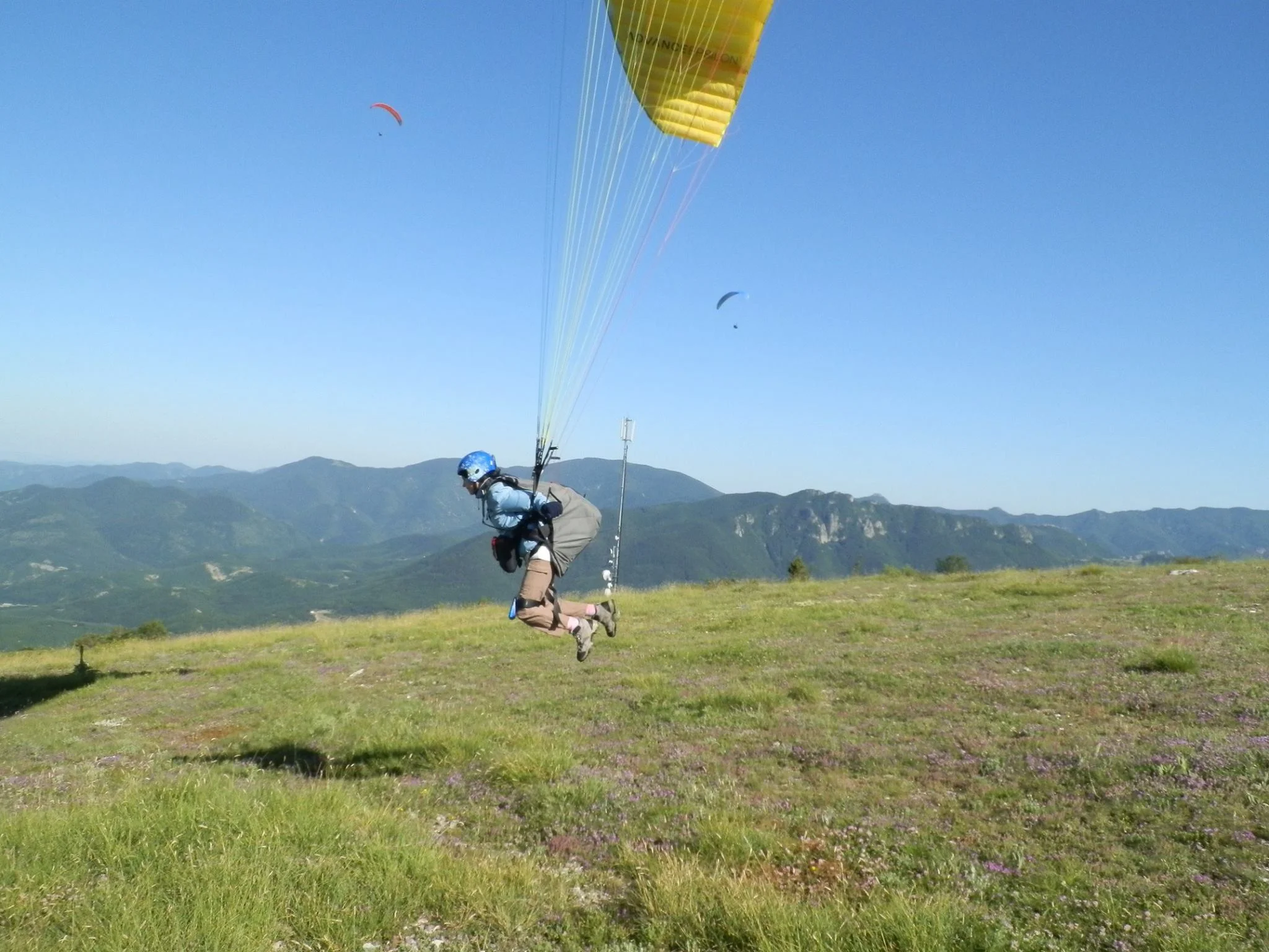 Работата е там, че по онова време нямаше особено голямо разнообразие от екипировка. Да се сдобиеш с крило за твоите килограми беше лукс. А да се сдобиеш с крило за твоите килограми и летателни възможности беше като шестица от тотото. Затова почти всички се учеха на стари „две-тройки“ (крила за напреднали). Кой каквото намери. Без претенции. Тук там някой успяваше да си внесе от чужбина подходящо за начинаещи крило, а чат пат дори някой гъзари се уреждаха и с резервен парашут.