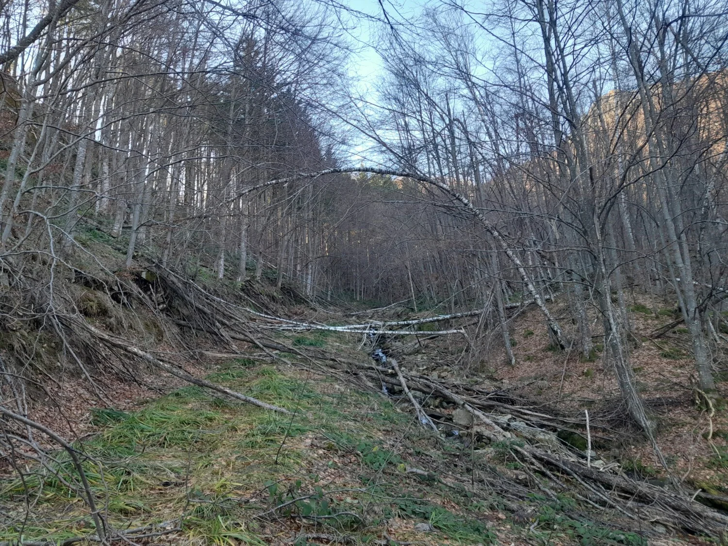 В началото си имаше горски път. Малко по-нататък се виждаше, че в гората около него е имало буря някога и действително имаше множество счупени дървета. Обаче някой беше разчиствал. И тъкмо се зарадвах, че всичко ще е наред, нищо че маркировка нямаше и разчистения участък свърши. Бяха рязали дърветата и ги бяха избутвали настрани, но в един момент просто бяха спрели. Неразчистените дървета пред нас обаче бяха сравнително тънки и не изглеждаше да е голям проблем да минаваме през тях прескачайки ги или да ги заобикаляме и затова смело продължихме. Виждах на картата, че се движим по зелената маркировка и това ме успокояваше, въпреки, че вече не се виждаха следи от човешки крак. Дотук добре.