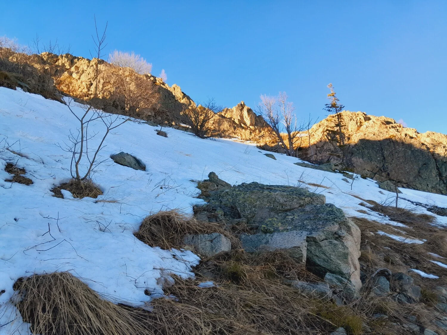 Продължихме и малко по-нататък взе да се появява и сняг. В началото на преспи, които ставаха все по-големи и по-големи и за съжаление започнаха да се появяват и камъни. Пътека все така не се виждаше.