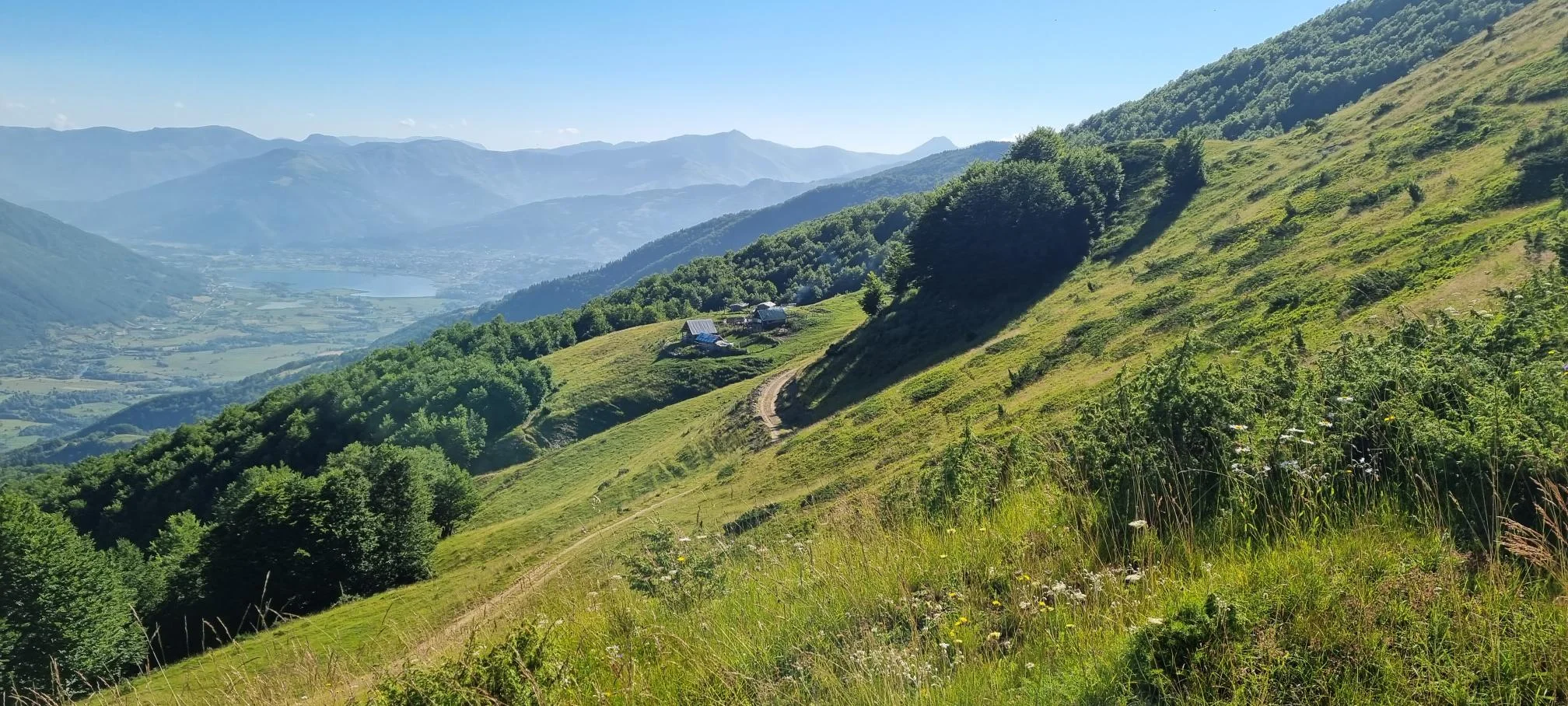 Решил съм го, продължавам. Долината постепенно се отдалечава, а баирът идва с пълни сили. Междувременно един (надявам се) добронамерен смок ми изскочи от една дупка на пътя и реших да го изчакам – може би и той търси да се скрие някъде на сянка, разбирам го. Започвам с атаката към връх Валушница на 1880м надморска височина. След успешното покоряване продължавам с връх Талианка (2057м), който е точно на границата с Албания. Тежко беше, но определено си струваше катеренето, макар и да не бях особено адекватен.