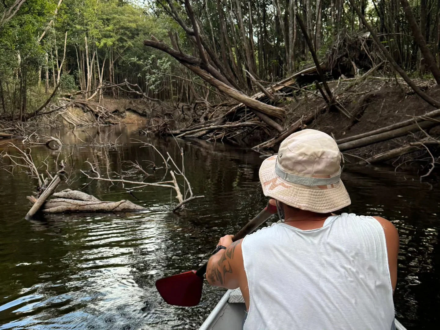 „Плажове отсреща, високи температури – реките нагоре ще са плитки, каналите тесни, езерата пресъхнали. Първо: няма да мога да избегна срещите с местните, с рибарите паулисти и по на север към подстъпите на Araca с индианските общности. Липсата на дъжд (стабилен) и в комбинация с катастрофалната суша (сезон 23/24), е благословия за гребане и бич. По вода (река) трудно може би ще намеря самотата си и търсеното усамотение с Природата, а и ще срещна и понеса повече атаки от bichos – пясъчни мухи, мукуй, паразити и комари.