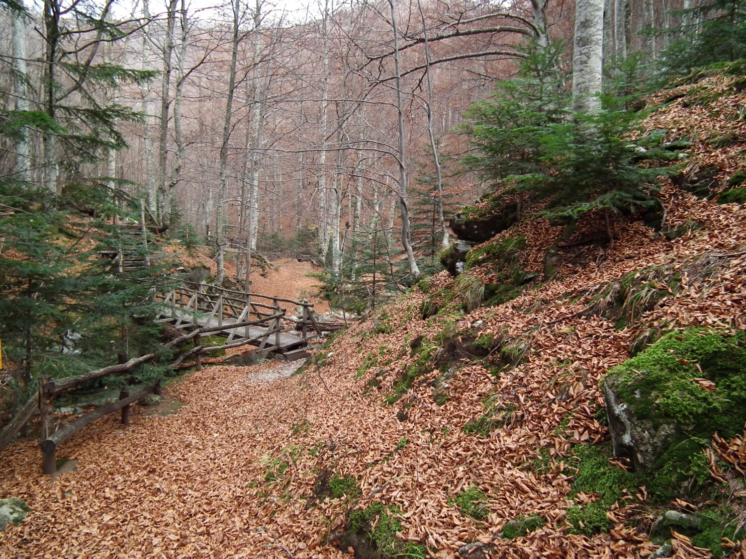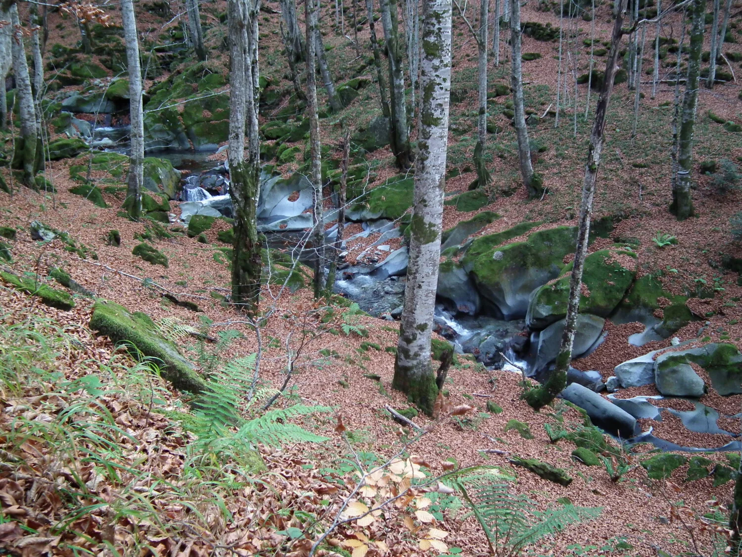 Заредиха се познати картини – пенливи бързеи се блъскаха между полирани до съвършенство скали и обрасли с много мъх окръглени камъни. Тук-там стърчеше по някоя все още свежо-зелена папрат. Високите стройни буки белееха разсъблечени… Газехме в току-що опадалата шума и с мъка намирахме пътя – всичко беше застлано с дебел златисто-кафяв килим. Сред неспирната шумотевица от нашите стъпки, се чуваха гласовете на птички, подхвръкващи пред нас, сякаш се опитваха да ни следват. Природата беше чиста, окъпана от последните дъждове. По всичко личеше, че полека се готви за дълъг зимен сън. Бяхме сами…, радвахме се на спокойствието и прекрасния ден. Поемахме жадно свежия планински въздух…
