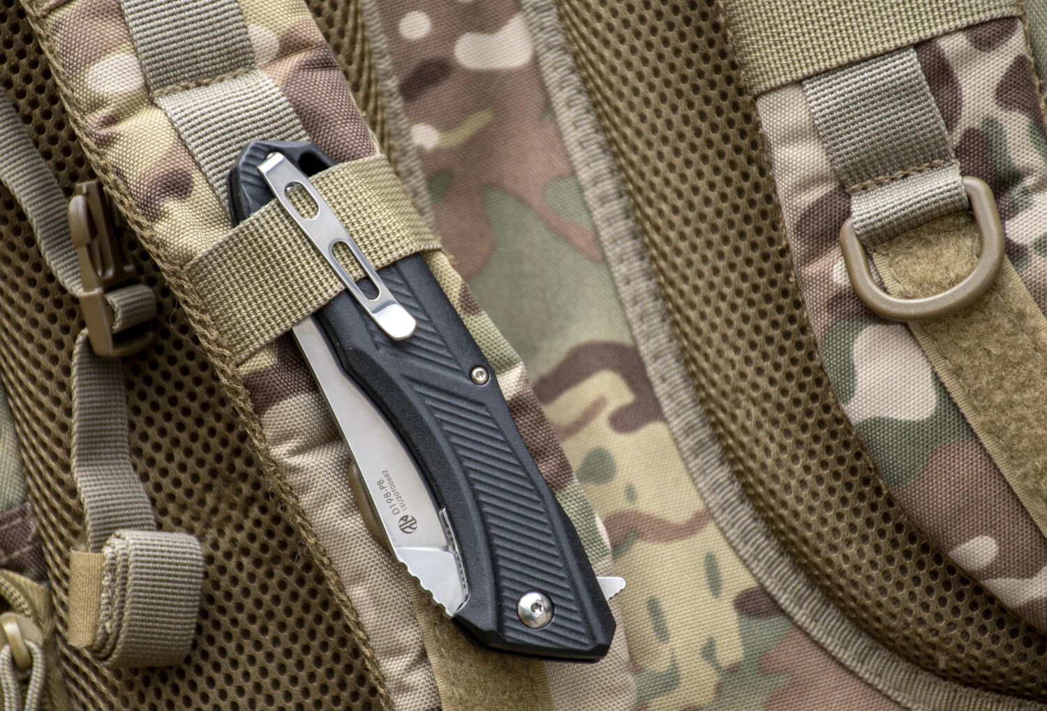 Съчетаващ някои от най-добрите характеристики на джобните ножове, той разполага и с още няколко приятни решения като необичайният “спусък”, който служи едновременно за отваряне на острието и като гард в извадено положения, както и щипката за колан, позволяваща монтаж от двете страни на дръжката.