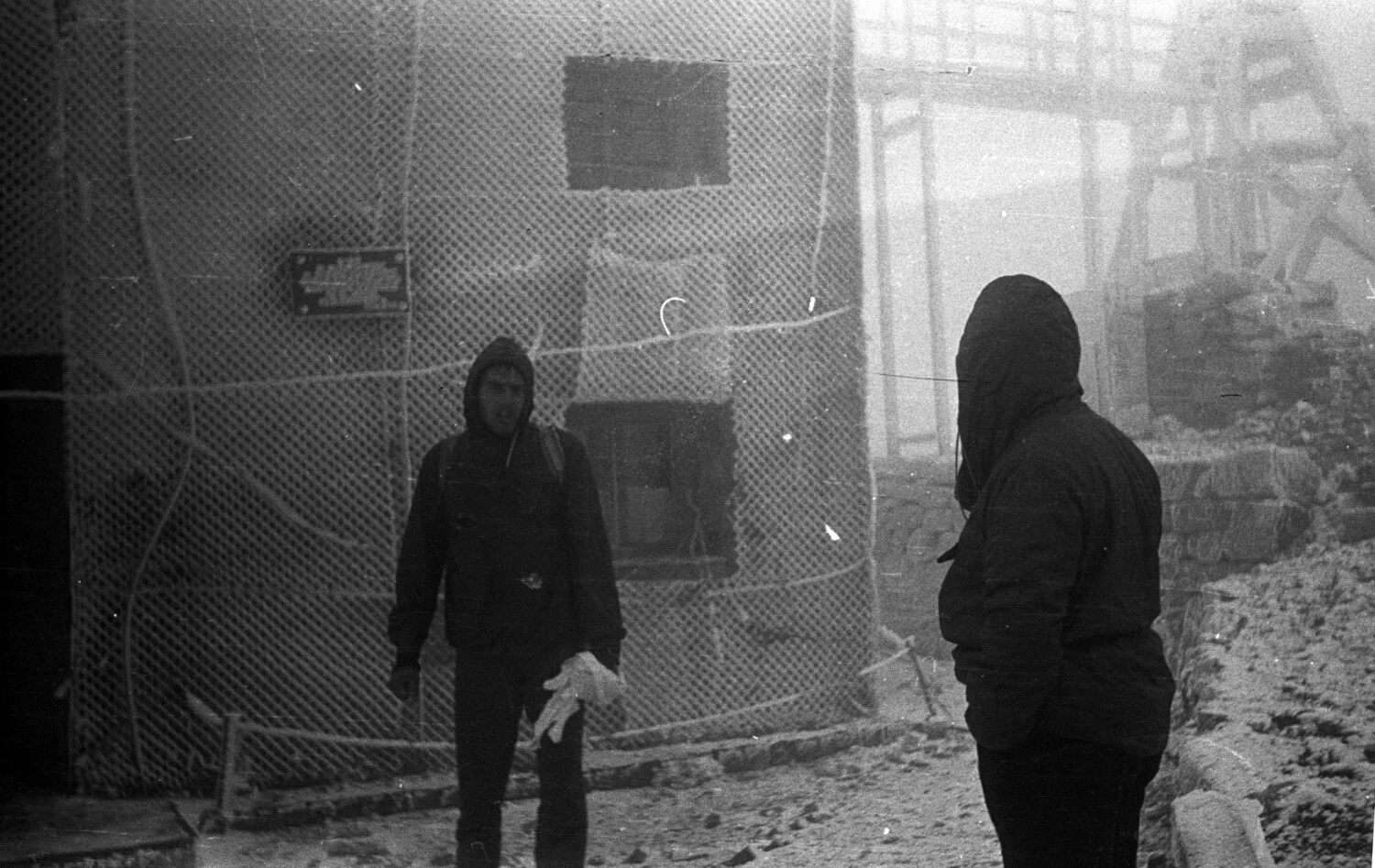 На вр. Мусала всичко беше заледено. Метеорологичната станция е опакована с мрежа срещу мълнии. (снимка – личен архив)На вр. Мусала бях в 12 ч. Метеорологът ми разказа как през отворения прозорец по време на буря в стаята е влязла и излязла кълбовидна мълния докато той лежал на леглото и не е посмял да мръдне. Изядох консервата копърка, която си носех (още я помня) и тръгнах обратно към Юндола. Времето се оправи – спря да вали, виждах върховете, видях къде съм минал на отиване към вр. Мусала. Беше красиво и приятно през Близнаците, Маришки връх, Манчо, Янчов връх, Ченгене чал, Софан.