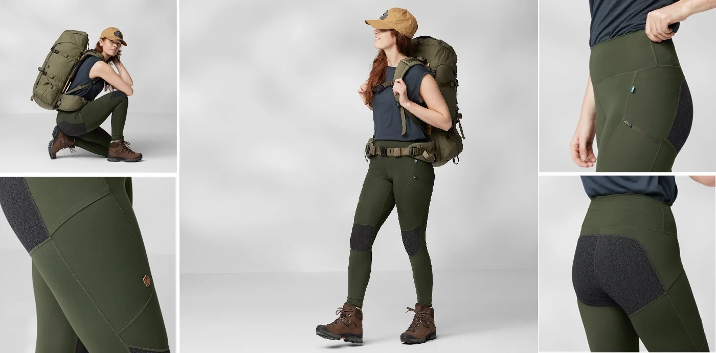 Еластичността на клина го прави изключително удобен. За това способства и удобната висока талия, която може да се регулира с вътрешен шнур. Клинът има два странични джоба, в които може да се носят най-нужните неща, а дължината 7/8 позволява по-удобно носене с туристически обувки и чорапи. Клинът е с плоски шевове, които спомагат за минимизиране риска от протриване. Abisko Pro Trecking Tights е еластичен, изработен от рециклиран полиестер с матово, непрозрачно покритие. Устойчивата на протърквания материя Cordura е поставена върху коленете и задната част на клина, която е и водоустойчива. Клинът е с висока талия и тежи 245 гр. при размер S.