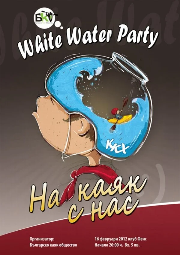 Партито на БКО се проведе на 16 февруари във клуб FANS в столицата. Събитието, което каякарите изрично ни помолиха да НЕ обявяваме предварително, протече при стройна организация в стил „строй се – преброй се“. Въпреки липсата на реклама, клубчето буквално се разпука по шевовете и дори имаше група недоволни метъли, които останаха навън заради голямата тълпа речни хора, окупирали тяхната дупка. Но това е от второстепенно значение…