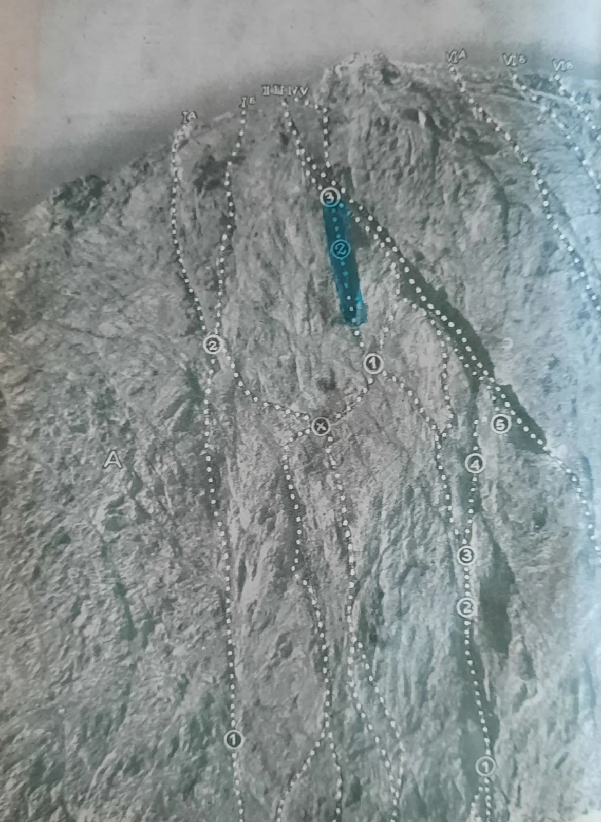 Северната стена на Вихрен и загиналите на 5 август 1954 г. армейски алпинисти (снимка: архив на доц. Сандю Бешев)